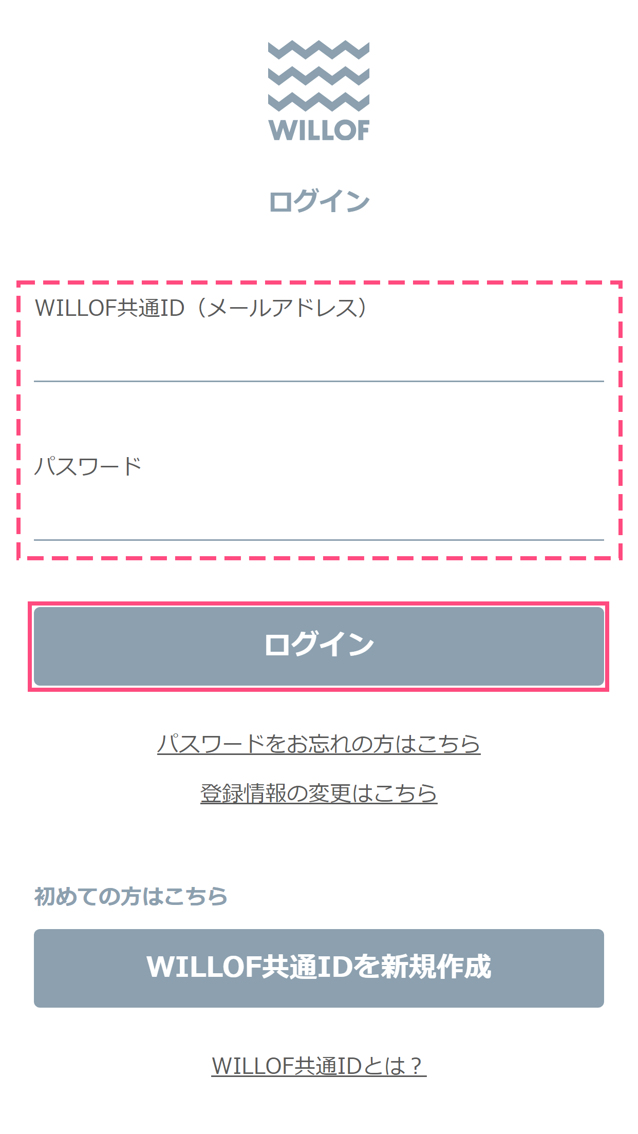 7. WILLOF共通ID・パスワードを入力しログイン