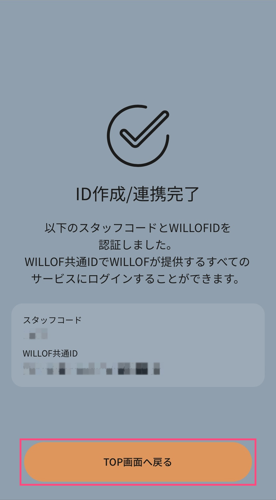 5. WILLOF共通ID情報を入力し「登録」を選択